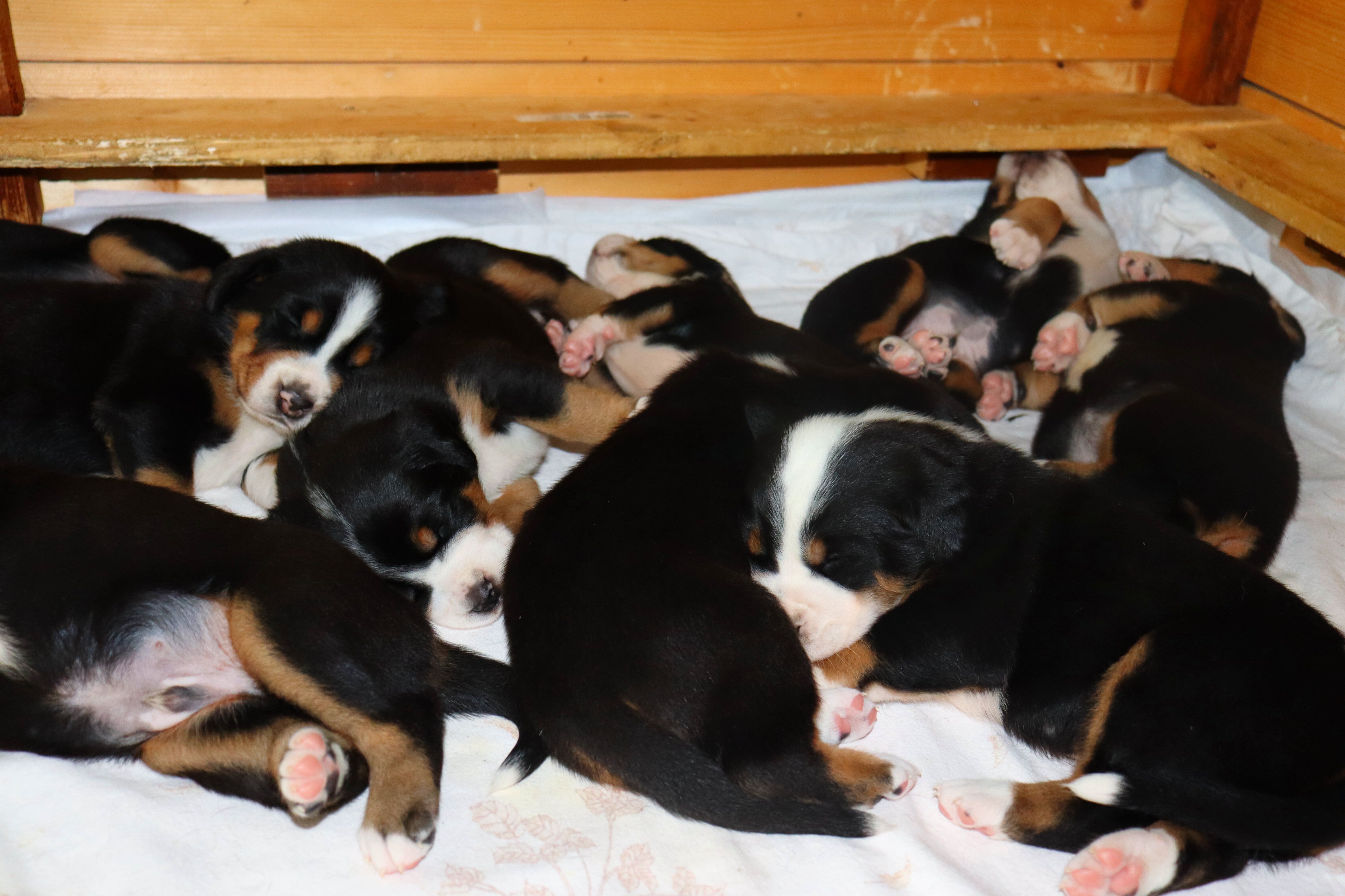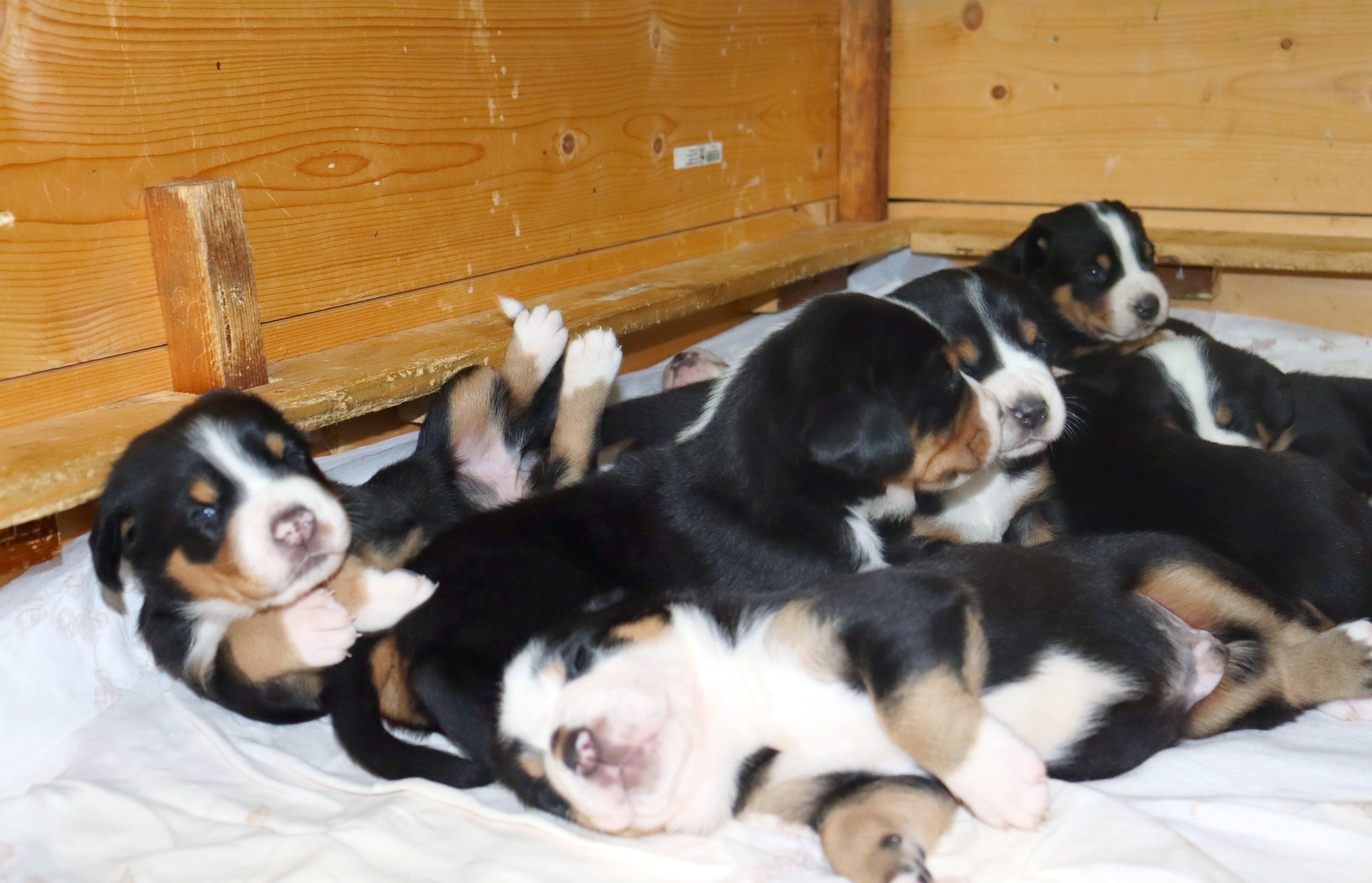 Unsere Welpen werden die ersten 4 Wochen im Haus aufgezogen.